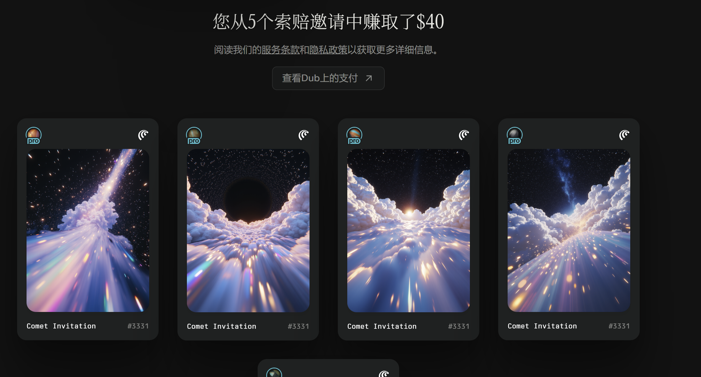 要在Dub注册账号,注意完成10个邀请可以获得100$奖励哦
